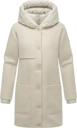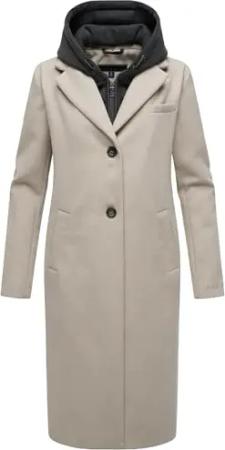 Damen Mantel in Woll-Optik langer Trenchcoat leicht oversized mit (abnehmbarem) Kapuzen-Einsatz aus Sweat-Material Kekstraum 14 Bone Gr. L