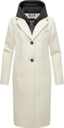 Damen Mantel in Woll-Optik langer Trenchcoat leicht oversized mit (abnehmbarem) Kapuzen-Einsatz aus Sweat-Material Kekstraum 14 Off White Gr. L