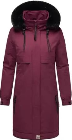 Damen Mantel lange warme Winterjacke mit Kunstfell und Kapuze (beides abnehmbar) Kaltwetterretter 14 Wine Gr. XS