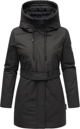 Damen Parka lange Winterjacke warm mit Taillengürtel und (abnehmbaren) Fleece-Kragen Eishauch 14 Black Gr. XL