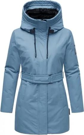 Damen Wintermantel warmer Parka mit abnehmbarer Kapuze und Taillengürtel Frostkuss 14 Powder Blue Gr. L