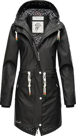 Damen Übergangsjacke Regenmantel wasserdichte lange Regenjacke mit verstellbarer Kapuze und geschweißten Nähten Tropical Stormoo Black Gr. XS