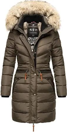 Damen warme Winter Steppjacke mit abnehmbarer Kunstfell-Kapuze Milianaa Pine Olive Gr. S