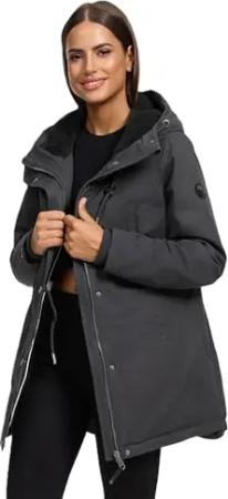 Damen Wintermantel warmer Parka lang mit hohem Kragen und weicher Kapuze Hokulanii Dark Grey Gr. XL