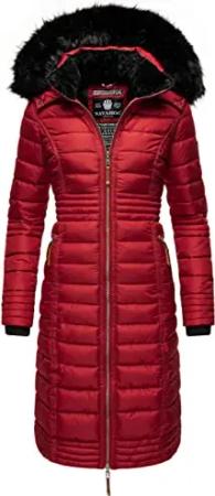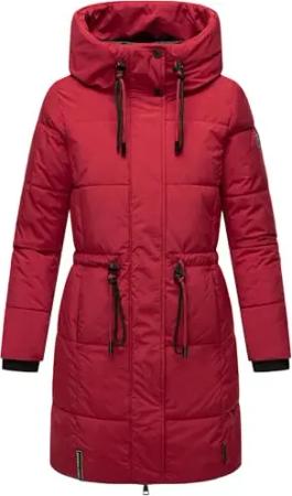Damen Wintermantel Warmer Steppmantel lang mit Kapuze Umay Dark Red Gr. S