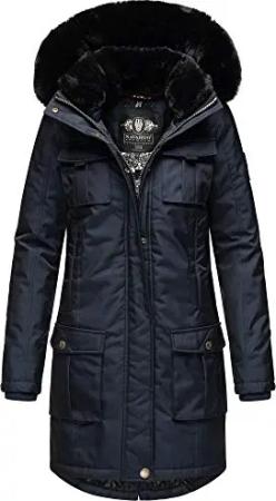 Damen Wintermantel warmer Parka mit magnetischer Abdeckleiste und verstellbarer Kapuze Winterprinzessin 14 Navy Gr. L