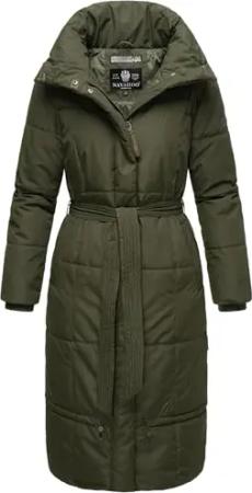 Damen Wintermantel Warmer Steppmantel extralang mit Gürtel Mirenaa Dark Olive Gr. L