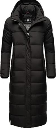 Damen Wintermantel warmer Steppmantel lang mit Kapuze und abnehmbarem Fleece-Kragen Knutschilein Black Gr. L