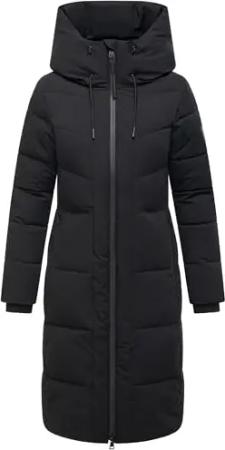 Damen Wintermantel warmer Steppmantel lang mit Kapuze und abnehmbarem Fleece-Kragen Knutschilein Black Gr. XL