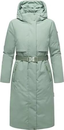 Damen Extralanger Wintermantel warmer Steppmantel mit Taillengürtel Eisblick 14 Smokey Mint Gr. L