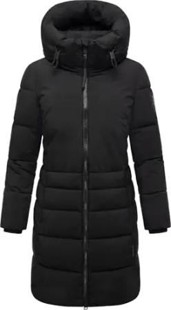Damen Wintermantel warmer Steppmantel lang mit abnehmbarer Kapuze Isalie Black Gr. XXL