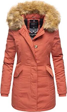Damen Winter Jacke Stepp Parka Mantel Winterjacke warm gefüttert Kunstpelz KARMAA XS-XXL (S, Dunkel Coral)