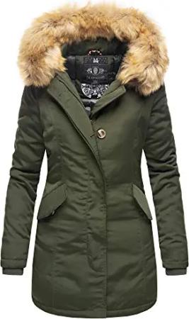 Damen Wintermantel stylischer Winterparka mit abnehmbarem Kunstfell Laviva Princess