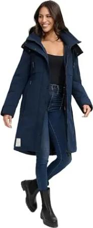 Damen warme Winterjacke mit kuscheliger Kapuze Bikoo Blau Gr. XS