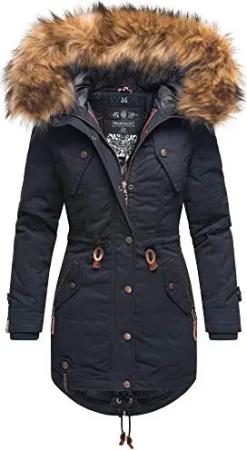 Damen Winter Jacke Stepp Parka Mantel Winterjacke warm gefüttert Kunstpelz SANAKOO S-XXL (XS, Navy)
