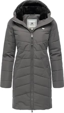 FRagwear Damen Langer Wintermantel warmer Steppmantel mit Kapuze Noita YOUMODO Stone Grey Gr. M