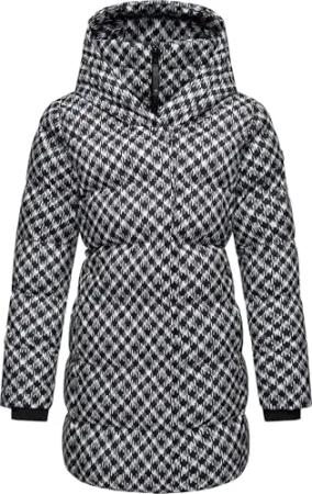 Damen langer Wintermantel mit Kapuze warmer Steppmantel mit angesagtem Hahnentritt Muster wasserdicht und atmungsaktiv Niara Print YOUMODO Black Gr. S
