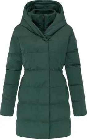Damen Wintermantel warmer Steppmantel lang mit Kapuze Niara Long YOUMODO Forest Green Gr. L