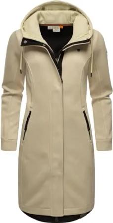 Damen leichter Rippstrick-Übergangsmantel lang windabweisend mit Kapuze Letti Long Bonded Ecru Gr. 4XL