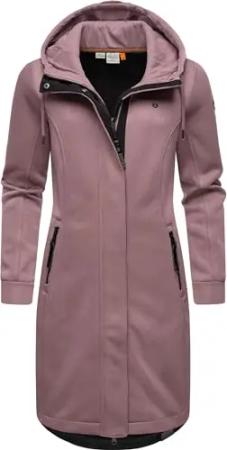 Damen leichter Rippstrick-Übergangsmantel lang windabweisend mit Kapuze Letti Long Bonded Mauve Gr. M