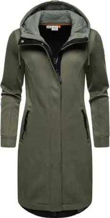 Damen leichter Rippstrick-Übergangsmantel lang windabweisend mit Kapuze Letti Long Bonded Olive Gr. L