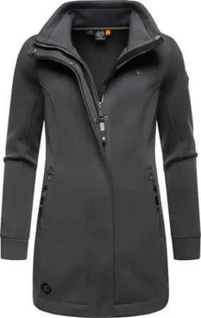 Damen Leichter Sweat-Übergangsmantel lang windabweisendl mit hohem Kragen Letrice Bonded Dark Grey Gr. 3XL