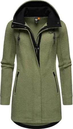 Damen eleganter Teddy-Fleecemantel warme lange Übergangsjacke Tedyco YOUMODO Pine Green Gr. L