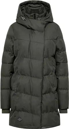Damen Lange Steppjacke Wintermantel mit Kapuze Ashani Block Intl. Dark Olive25 Gr. M