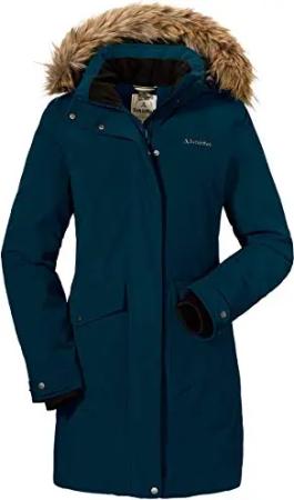 Damen Ins Parka Style Boslix WMS, wärmende Winterjacke mit synthetischer Daune, wind- und wasserabweisende Funktionsjacke mit gefütterter Kapuze, navy blazer, 34