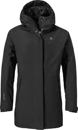Damen Parka Style Froda WMS, atmungsaktiver, wasserdichter Parka mit 2-Wege-Stretch, leichte Outdoorjacke mit verstellbarer Kapuze, black, 38