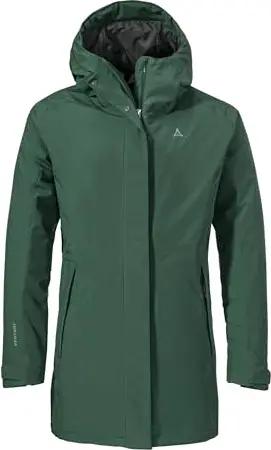 Damen Ins Parka Style Boslix WMS, wärmende Winterjacke mit synthetischer Daune, wind- und wasserabweisende Funktionsjacke mit gefütterter Kapuze, gem jade, 48