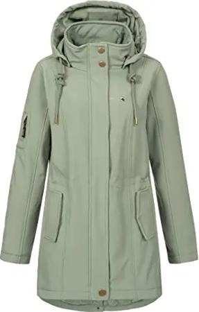 Damen Softshellmantel lange Übergangsjacke Outdoormantel mit Kapuze Ybela Olive24 Gr. 5XL