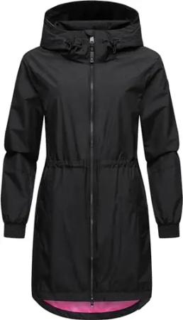 Damen Übergangsjacke leichte Jacke lang wasserdicht mit Kapuze und Mesh-Innenfutter Bronja II Black Gr. M