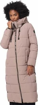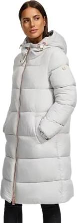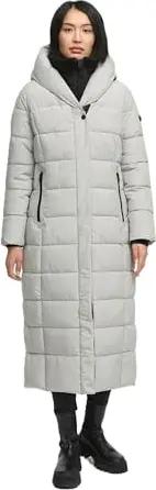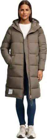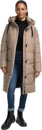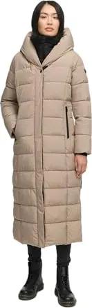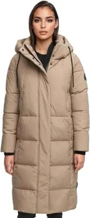 Damen Wintermantel Warmer Steppmantel lang mit Verstellbarer Kapuze Armasa Taupe Grey Gr. S