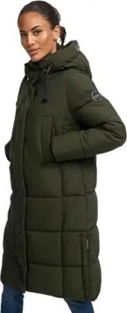 Damen Wintermantel (XS-6XL) - gesteppt, abnehmbare Kapuze, 6 Taschen, Rippkragen - N079 - DarkOlive Größe S - Gr.S