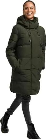 Damen Wintermantel (XS-6XL) - gesteppt mit fester Kapuze und 4 Taschen - N065 - DarkOlive Größe XL - Gr.XL
