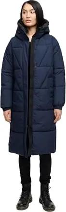 Damen Wintermantel (XS-6XL) - gesteppt mit fester Kapuze und 4 Taschen - N065 - StormyBlue Größe XL - Gr.XL