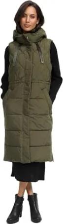 Damen Winterweste (XS-3XL) - Steppweste, lang, teils mit Magnetverschluss, verstellbare Kapuze, Warme Weste Frauen - N018 (M, Dark-Olive)