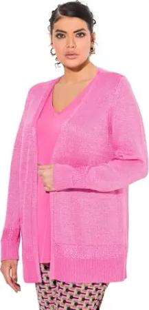 Damen große Größen Übergrößen Plus Size Strickjacke, V-Ausschnitt, offene Form, Langarm pink 58+ 836476802-58+