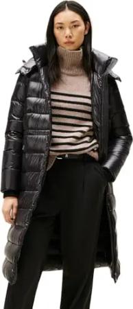 Damen Steppmantel Gloss Down Waist Maxi mit Stehkragen, Schwarz (Black), XXXL