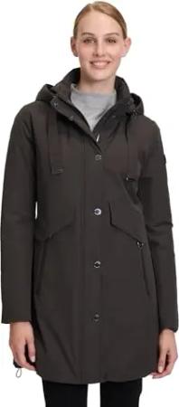 Damen Übergangsjacke Regenmantel wasserdichte lange Regenjacke mit verstellbarer Kapuze und geschweißten Nähten Tropical Stormoo Dark Choco Gr. XS