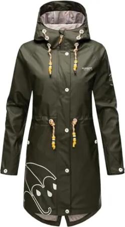 Damen lange Übergangsjacke wasserdichter und atmungsaktiver Kurzmantel mit verstellbarer Kapuze Zuzka Sport YOUMODO Dark Olive Gr. M