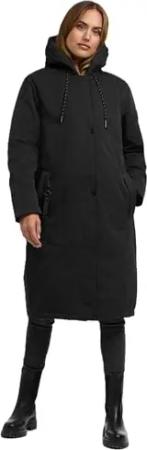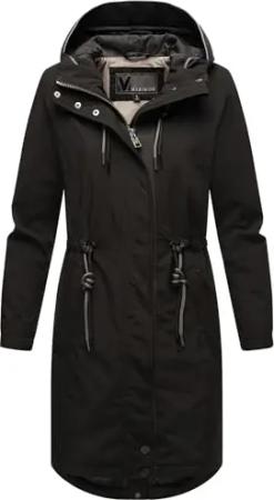 Damen lange Übergangsjacke wasserdicht und atmungsaktiv Parka mit abnehmbarer Kapuze und feiner Rillenstruktur Dakkota B YOUMODO Black Gr. M