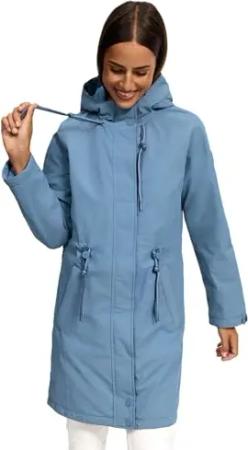 Damen Übergangsjacke leichte Jacke lang wasserdicht mit abnehmbarer Kapuze Dakkota II Stone Blue Gr. M