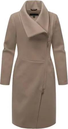 Damen lange Übergangsjacke Mantel in Woll-Optik mit asymmetrischem Kragen und wasserdichtem Reißverschluss Samtrose 14 Taupe Grey Gr. XS