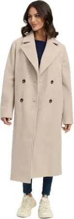 Damen lange Übergangsjacke Mantel in Woll-Optik mit Reverskragen Sternlein 14 Bone Gr. 3XL