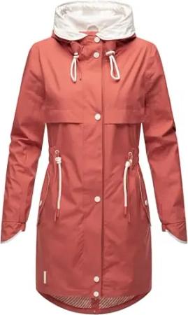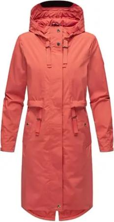 Damen leichter Übergangsmantel Kurzmantel lang mit verstellbarer Kapuze Silberperlee Coral Red Gr. XL