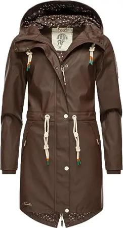 Damen Übergangsjacke Regenmantel wasserdicht lang mit Kapuze Tropical Stormoo Dark Choco Gr. M