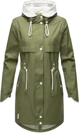 Damen wasserdichte Übergangsjacke leichte Jacke lang mit Kapuze Belinka Olive24 Gr. S