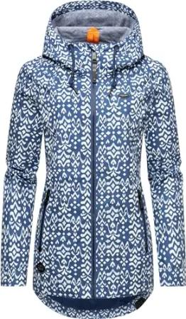 Damen Softshelljacke (XS-3XL) mit Kapuze - Wasserabweisend, Fleece innen, Tasche am Arm, Mantel, Warme Jacke Frauen B614 (XS, Blau-Muster)